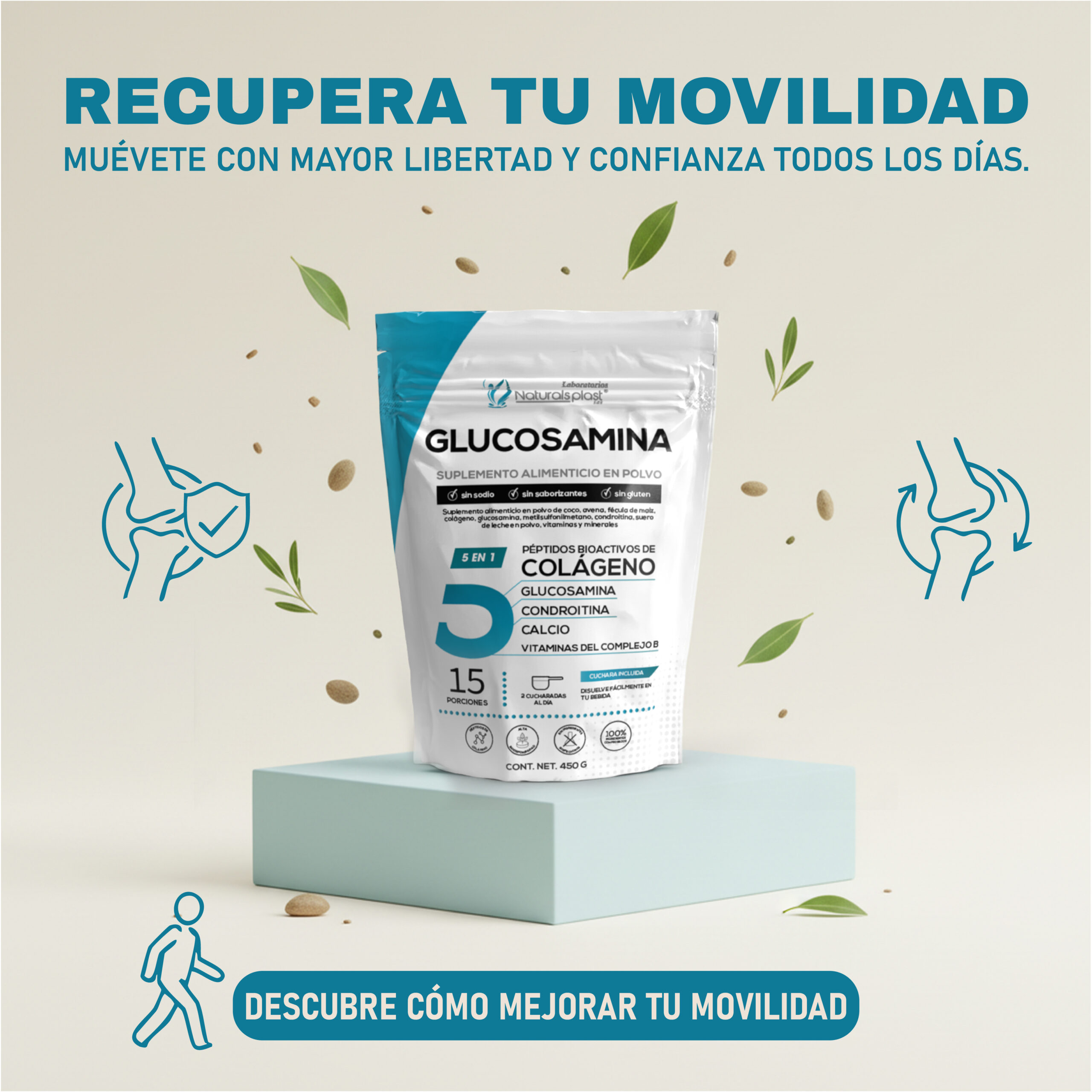 La Glucosamina 450g, sirve como suplemento alimenticio para apoyar la salud de las articulaciones y los huesos.